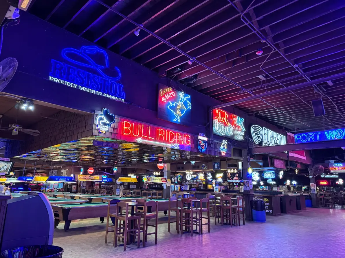 Daarna verkende ik samen met Estela van Visit Fort Worth het Cowtown Coliseum, waar nog steeds rodeo’s en paardenshows plaatsvinden. Ze regelde ook een bezoek aan Billy Bob’s Texas, de grootste honky-tonk ter wereld, dat voel je zodra je binnenstapt. Een gigantisch complex met meerdere dansvloeren, bars, live optredens, line-dancelessen en zelfs een arena voor bull riding. Een heerlijke mix van authentieke Texas-sfeer, countrymuziek, neonverlichting, laarzen, hoeden en pure fun. Billy Bob’s is een absolute must-do als je in Fort Worth bent, een avond vol typisch Texaans entertainment is hier gegarandeerd.