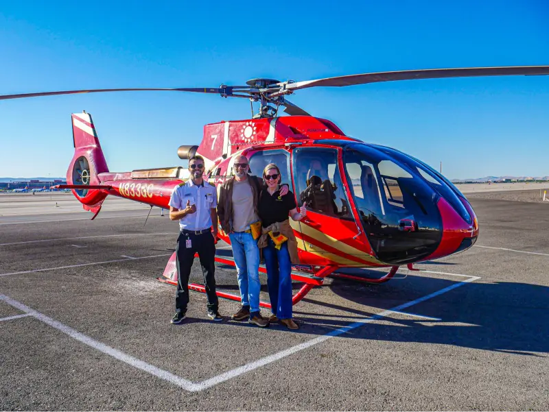 De tweede ochtend in Las Vegas begon met iets dat het label “ochtendactiviteit” eigenlijk te bescheiden vindt: de King of Canyons Helicopter Tour. De ochtend begon dan ook met een knaller. Nog voor mijn eerste koffie stond er een limousine-achtige shuttle klaar aan het hotel voor de helikoptervlucht. In de VIP-terminal naast de Strip stapte ik in een rode helikopter die perfect in een actiefilm zou passen.